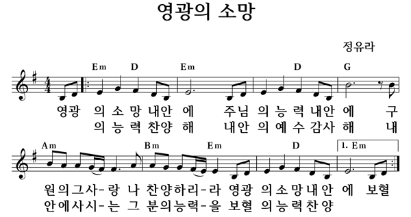 | 산위의마을워십 | 단선율 | G |