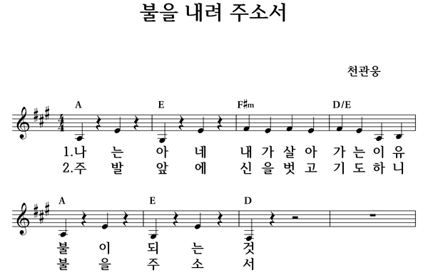 주 발 앞에 신을 벗고 기도하니 불을 주소서