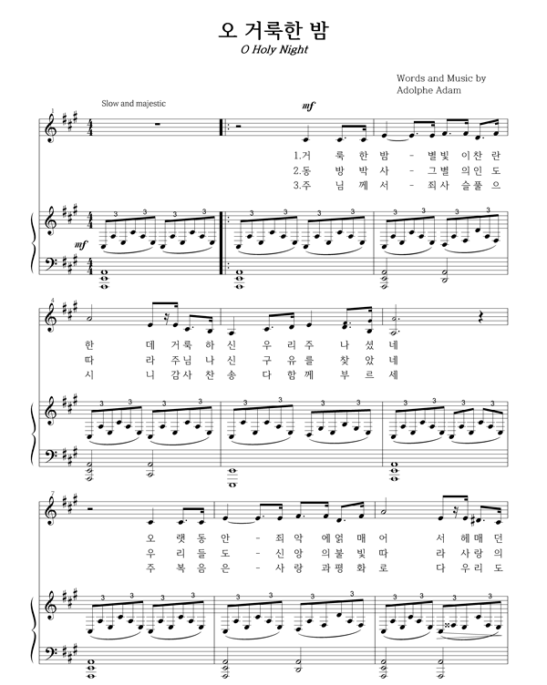 구주가 나신 밤 오 거룩한 밤 거룩 거룩한 밤
