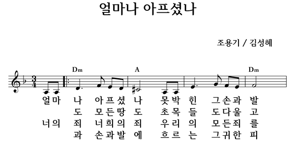 얼마나 아프셨나 못박힌 그 손과 발