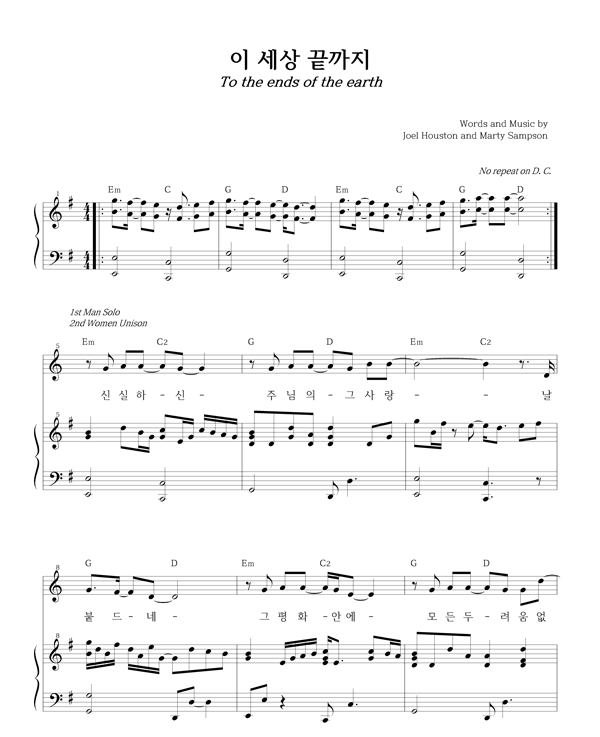 - 3. 가사와 동영상은 참고용으로 악보와 정확히 일치하지 않을 수 있습니다.