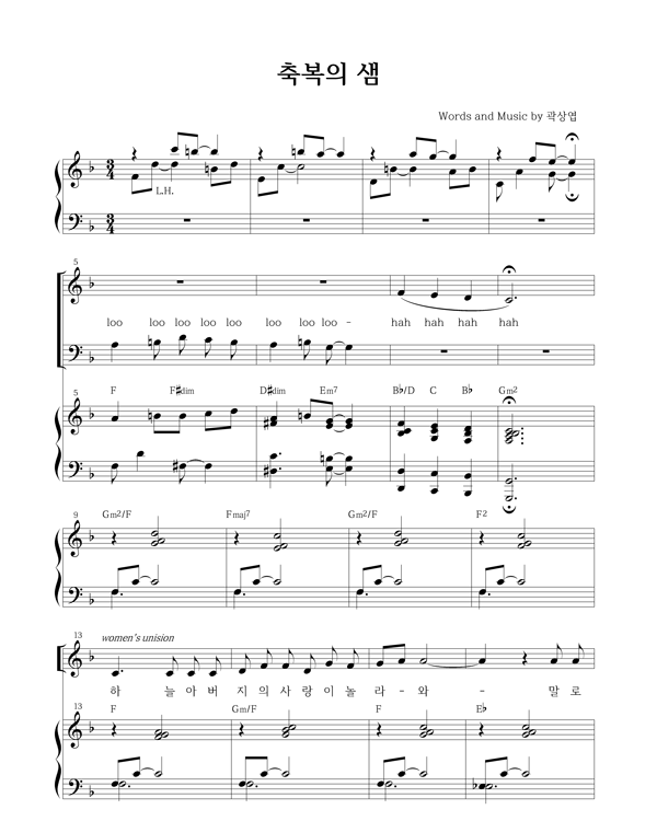 - 2. 악보는 인쇄만 가능하고 다운로드, 이메일, 우편발송등의 서비스를 지원하지 않습니다.