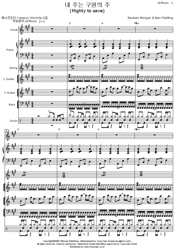 | Hillsong With 캠퍼스워십 | 단선율 | A |