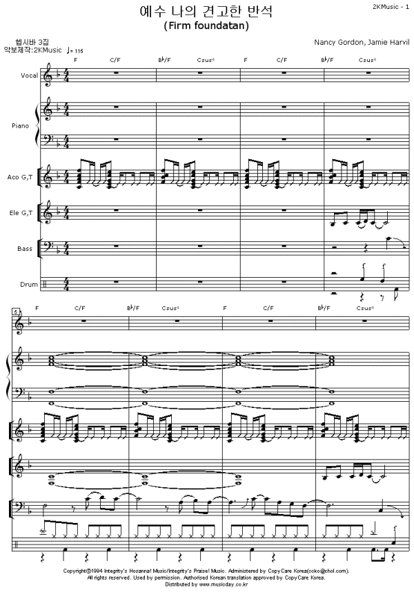 - 2. 악보는 인쇄만 가능하고 다운로드, 이메일, 우편발송등의 서비스를 지원하지 않습니다.