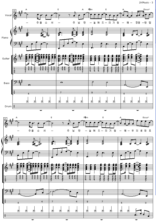 - 2. 악보는 인쇄만 가능하고 다운로드, 이메일, 우편발송등의 서비스를 지원하지 않습니다.