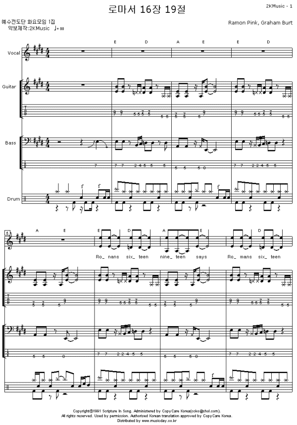 - 2. 악보는 인쇄만 가능하고 다운로드, 이메일, 우편발송등의 서비스를 지원하지 않습니다.