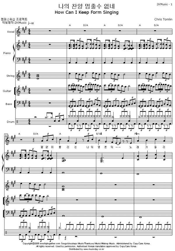 - 2. 악보는 인쇄만 가능하고 다운로드, 이메일, 우편발송등의 서비스를 지원하지 않습니다.