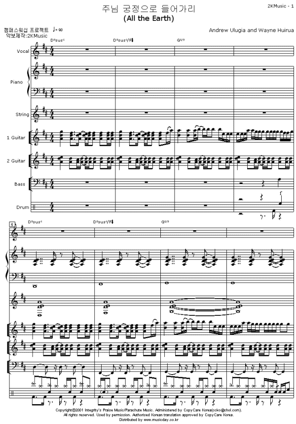 - 2. 악보는 인쇄만 가능하고 다운로드, 이메일, 우편발송등의 서비스를 지원하지 않습니다.
