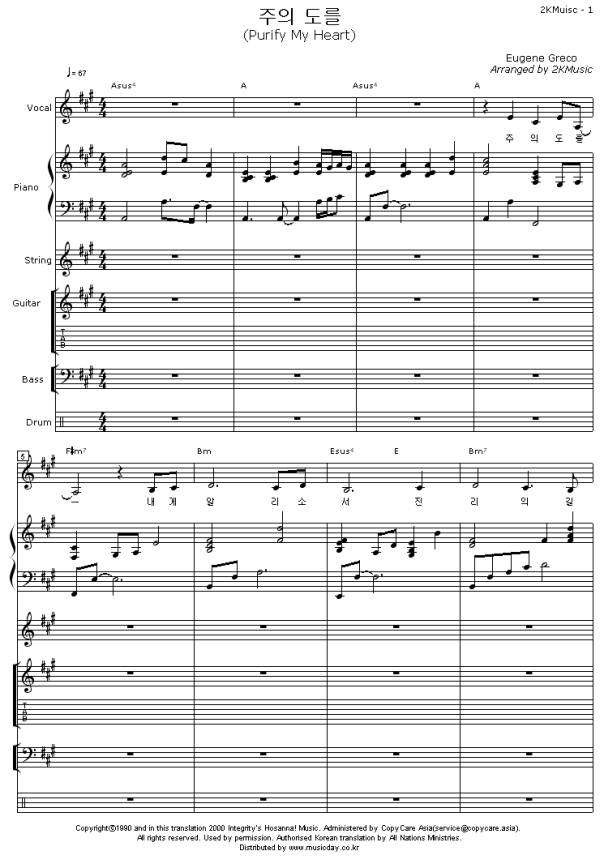 - 2. 악보는 인쇄만 가능하고 다운로드, 이메일, 우편발송등의 서비스를 지원하지 않습니다.