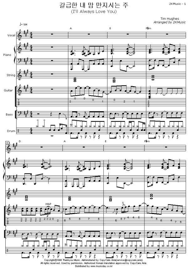 - 2. 악보는 인쇄만 가능하고 다운로드, 이메일, 우편발송등의 서비스를 지원하지 않습니다.