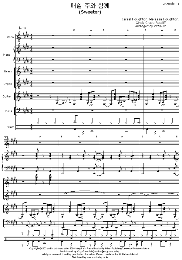 - 2. 악보는 인쇄만 가능하고 다운로드, 이메일, 우편발송등의 서비스를 지원하지 않습니다.